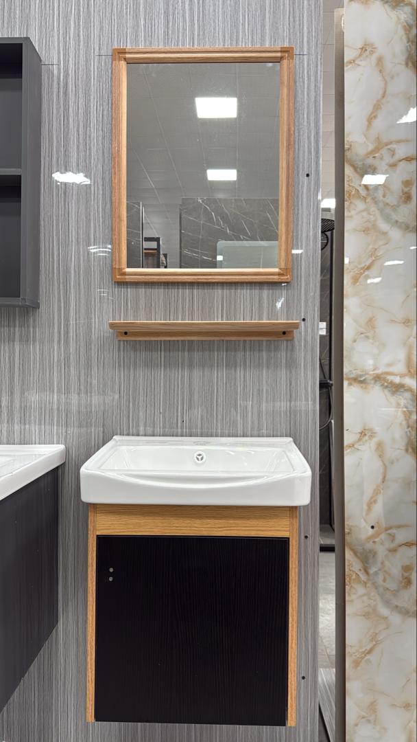 (SM-77) Oak Frame Shelf Vanity SetAvailability: 5 in stock