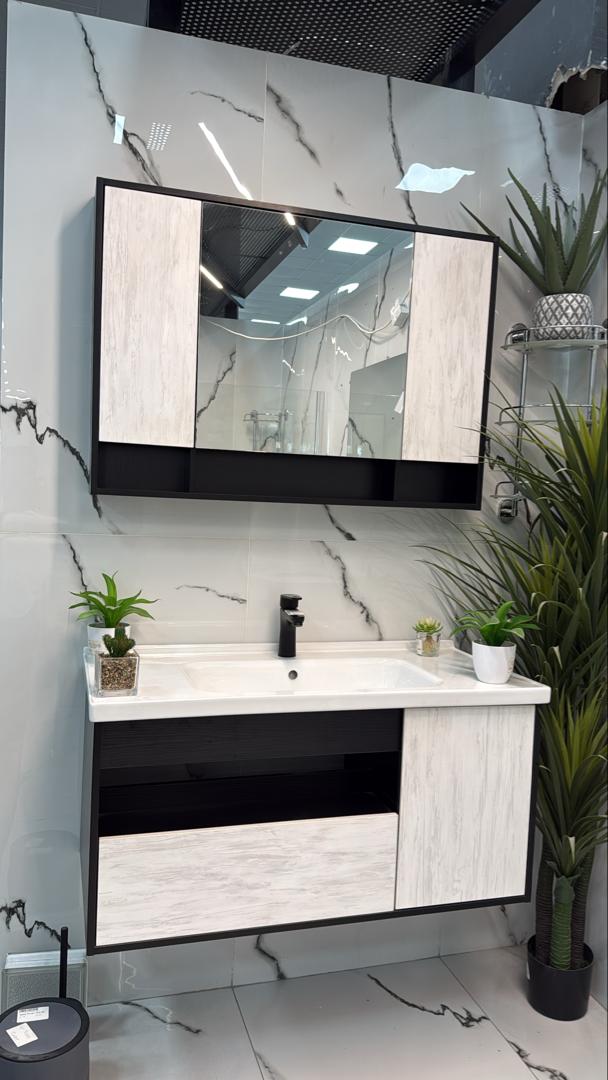 (SM-87) White Stone Top Black Base Vanity SetAvailability: 5 in stock