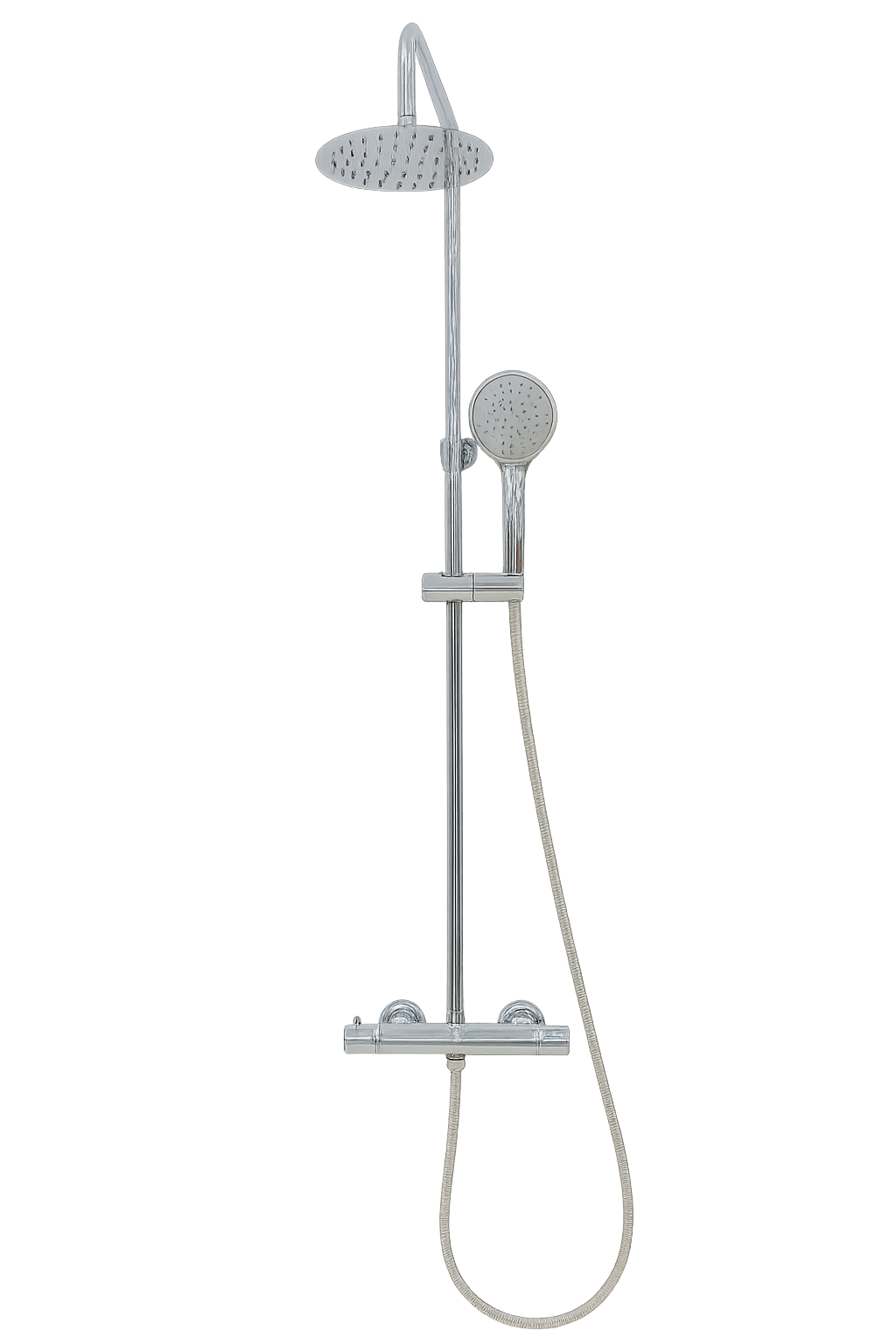 Variant of slim chrome round shower set.