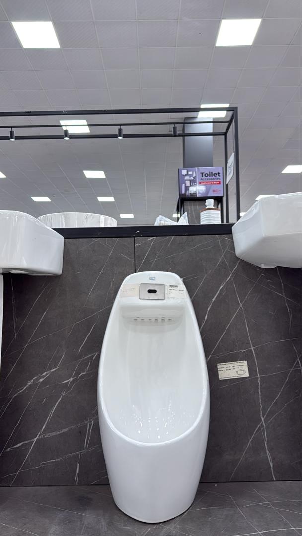 This Trent urinal is a sleek wall-hung model in glossy white ceramic. It has an integrated sensor flush at the top so users do not need to touch any handle, which keeps washrooms cleaner and more hygienic. Suitable for offices, malls, restaurants and public toilets.